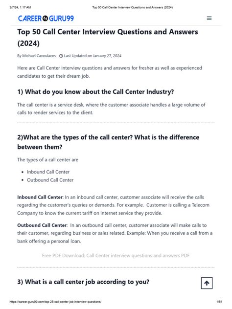 call center interview questions and answers for experienced pdf