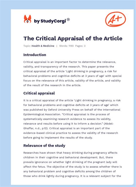 critical appraisal of research article example. There are some references to critical appraisal of research article example in this article. If you are looking for critical appraisal of research article example you've came to the right place. We have posts about critical appraisal of research article example. You can check it out below.