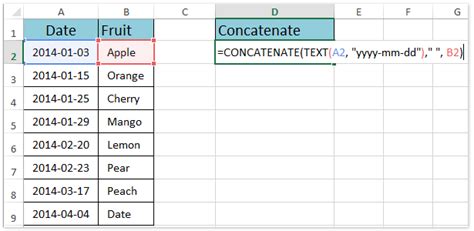 excel formula to concatenate text and date