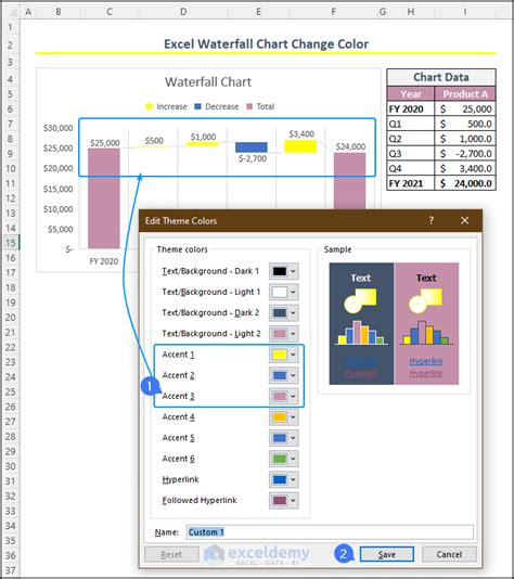 how to change colors in a waterfall chart in excel