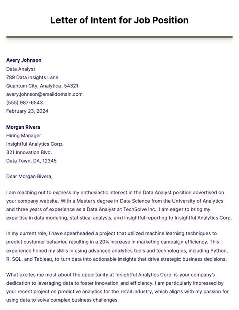 how to write a letter of intent for a position