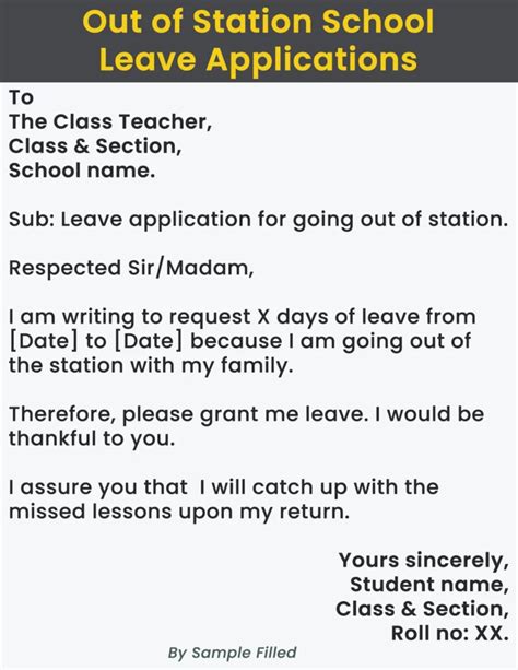 how to write an application for absent in school due to out of station