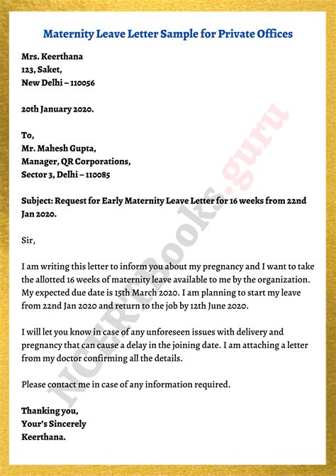 letter application for maternity leave