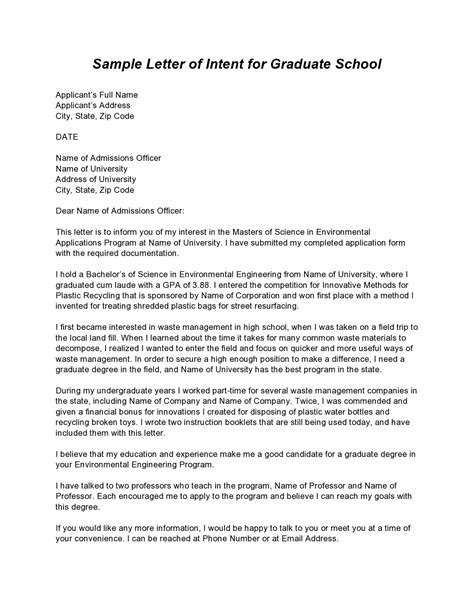 statement of intent grad school example