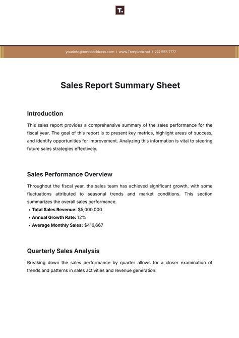 summary of sales report template